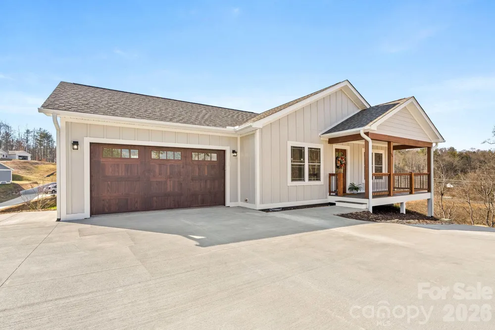 Looking for low maintenance and easy living? This one is it. Single level living in a new gated community in the Mars Hill area. Conveniently located a short distance from Main St, I-26 and an easy drive to Asheville or Tennessee, this home offers so much with easy living. A 1 story home on a crawl space, the main level garage provides easy access to the home. A small yard makes maintenance easy along with a smaller footprint for less upkeep. This two bedroom home lives large with the vaulted ceilings and open concept floorplan. There is a nice covered front porch and also a covered side deck - both finished with composite decking so there is no staining/painting required and upkeep is simple. This home features smart siding (not vinyl) and has great curb appeal. The concrete driveway give easy access to this cul-de-sac lot. There is a gas log fireplace in the living room with modern brick surround and custom mantel with shiplap accent wall above. You'll appreciate the kitchen island and breakfast bar, along with the granite tops, custom tiled backsplash & deep farmhouse style sink. A spacious laundry room is located adjacent and off the hallway. The Primary Bedroom has great natural light, ceiling fan, walk-in closet and an en-suite full bath with custom tiled walk-in shower and bench. There is a double vanity with great cabinet space. The second bedroom is also spacious and there is a 2nd full bath with tub/shower. Both bathrooms have matching granite tops. If you're seeking a move-in ready home of a finer quality and finishes in a gated community, then this one should be at the top of your list. See the property video here: https://listings.shindlersolutions.com/video/IexvS011eII1ZxXeTCAr7MLu9CNP3jIQIncKTh7nmndc and you can take a Virtual Tour here: https://my.matterport.com/show/?m=qrEn89DXnFF